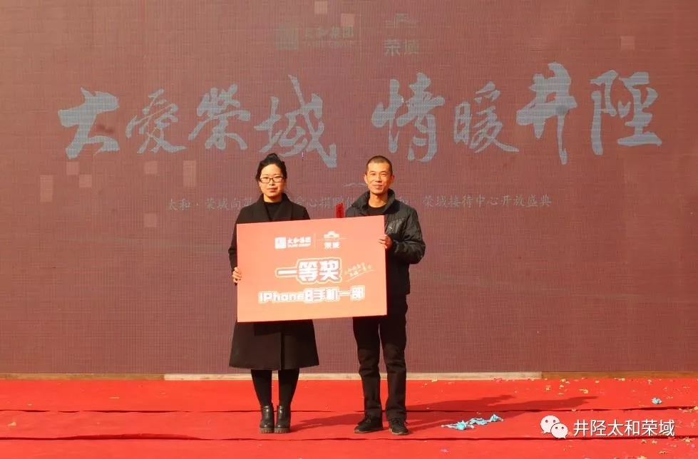 2018年1月14日,【太和·榮域】愛(ài)心捐贈(zèng)儀式暨接待中心的綻放圓滿(mǎn)舉行。井陘縣人民檢察院檢察長(zhǎng)梁永福先生、河北太和集團(tuán)總裁兼太和電子城總經(jīng)理李美璇女士、井陘縣住房和城鄉(xiāng)建設(shè)局局長(zhǎng)樊國(guó)強(qiáng)先生、井陘縣微水鎮(zhèn)人民政府黨委書(shū)記趙建軍先生、井陘縣教育局局長(zhǎng)劉華杰先生、井陘縣國(guó)土資源局局長(zhǎng)張貴文先生、井陘縣微水鎮(zhèn)鎮(zhèn)長(zhǎng)張海亮先生、河北太和集團(tuán)地產(chǎn)運(yùn)營(yíng)中心總經(jīng)理趙博超先生、河北太和集團(tuán)井陘榮域項(xiàng)目總經(jīng)理許詠梅女士蒞臨現(xiàn)場(chǎng)。同時(shí)還有,井陘縣微水鎮(zhèn)微水村、南河頭村,井陘縣交警大隊(duì)、城管大隊(duì)等相關(guān)部門(mén)的領(lǐng)導(dǎo)和工作人員,以及第一小學(xué)的部分老師共同到場(chǎng)觀禮。
