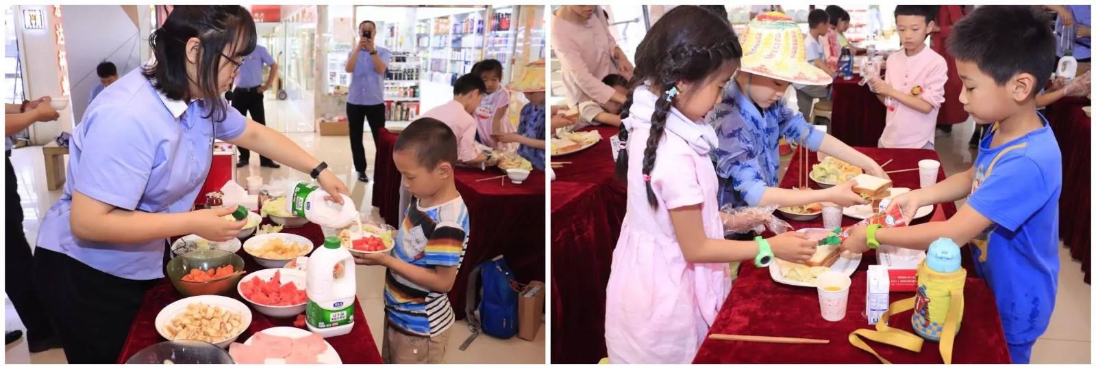 愛心捐贈(zèng)儀式結(jié)束后,石家莊心田學(xué)園的小朋友們來到了太和文化禮品城和太和百貨日化城開啟了六一快樂體驗(yàn)之旅。小朋友們?cè)谶@體驗(yàn)了手工貼畫,也參與了廚房美食的制作過程,不僅鍛煉了小朋友們的動(dòng)手能力,還鍛煉了相互協(xié)作的能力。