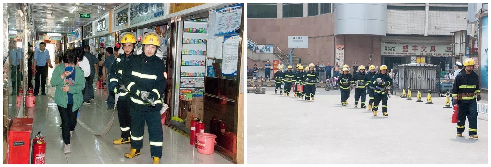 參觀完畢后,在商城北廣場(chǎng)進(jìn)行了一次機(jī)動(dòng)性的火災(zāi)應(yīng)急演練,禮品城巡查人員發(fā)現(xiàn)一層突發(fā)險(xiǎn)情,立即利用中繼系統(tǒng)呼叫南三條消防站指揮中心,南三條消防站指揮員立即調(diào)度禮品城周邊區(qū)域的微型消防站隊(duì)員前去增援,在指揮員發(fā)出緊急集合指令后,各單位微型站人員按照平時(shí)的訓(xùn)練要求,佩戴好個(gè)人防護(hù)裝備,攜帶滅火器材,迅速到達(dá)集結(jié)地點(diǎn),開(kāi)展演練,此次演練過(guò)程中全體演練人員達(dá)到了預(yù)期效果。體現(xiàn)了聯(lián)動(dòng)區(qū)域各單位微型消防站隊(duì)員超強(qiáng)的應(yīng)急處置能力,反應(yīng)出各單位之間的聯(lián)動(dòng)機(jī)制、微型消防站隊(duì)員的滅火、疏散能力,確保在發(fā)生火災(zāi)時(shí),能夠迅速有效的予以撲救和控制火勢(shì)蔓延,及時(shí)滅火和疏散人員,最大限度地避免財(cái)產(chǎn)損失。