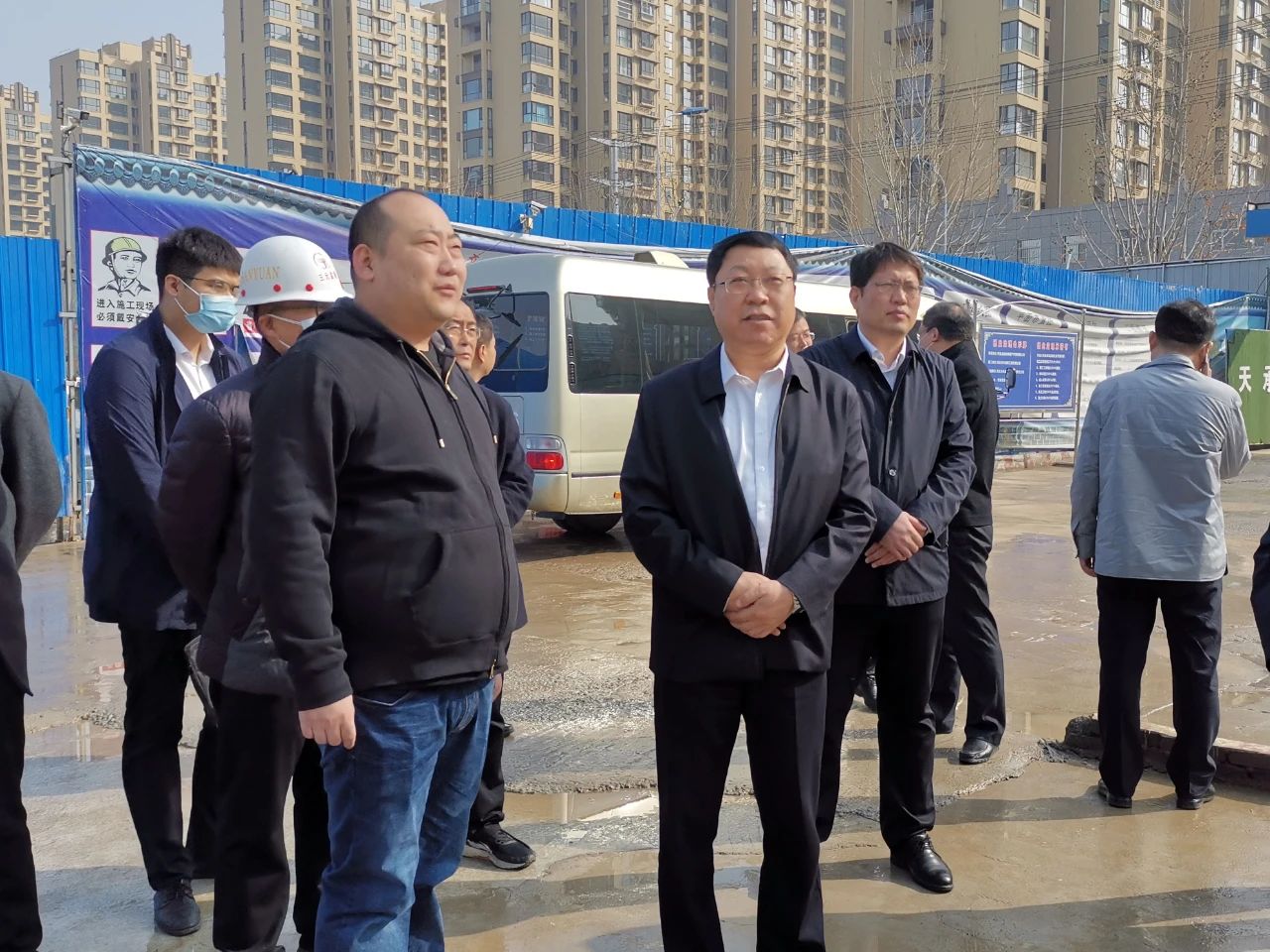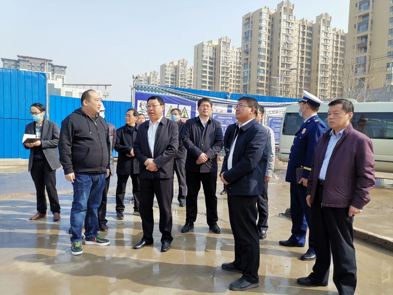 在太和英郡二期項目現(xiàn)場,縣長劉新營詢問了項目的節(jié)后復(fù)工情況、工地安全生產(chǎn)組織及物資準(zhǔn)備情況,太和集團衡水地產(chǎn)運營公司總經(jīng)理李育琨向劉新營作了詳細匯報。劉新營在聽取匯報后,對太和英郡項目的安全生產(chǎn)工作表示肯定,并就項目后續(xù)的推動工作作出重要指示。
