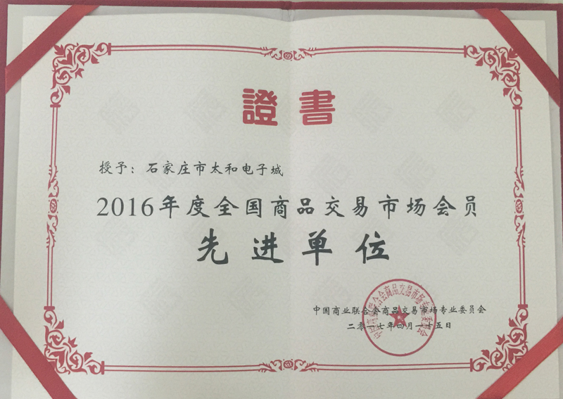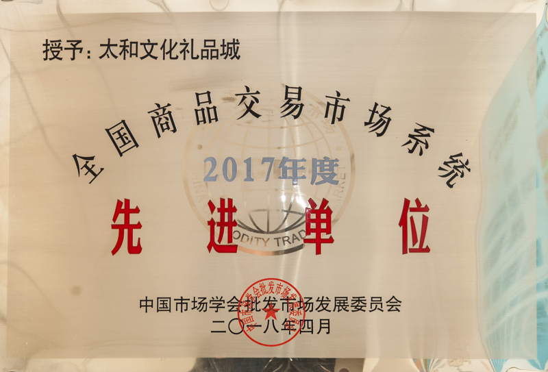 太和文化禮品城榮獲 2017 全國商品交易系統(tǒng)先進單位