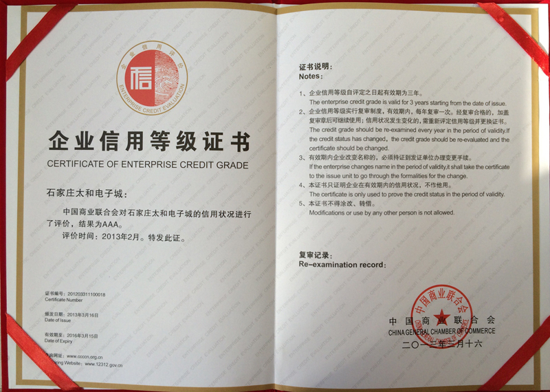 太和文化禮品城榮獲 3A級信用企業(yè)